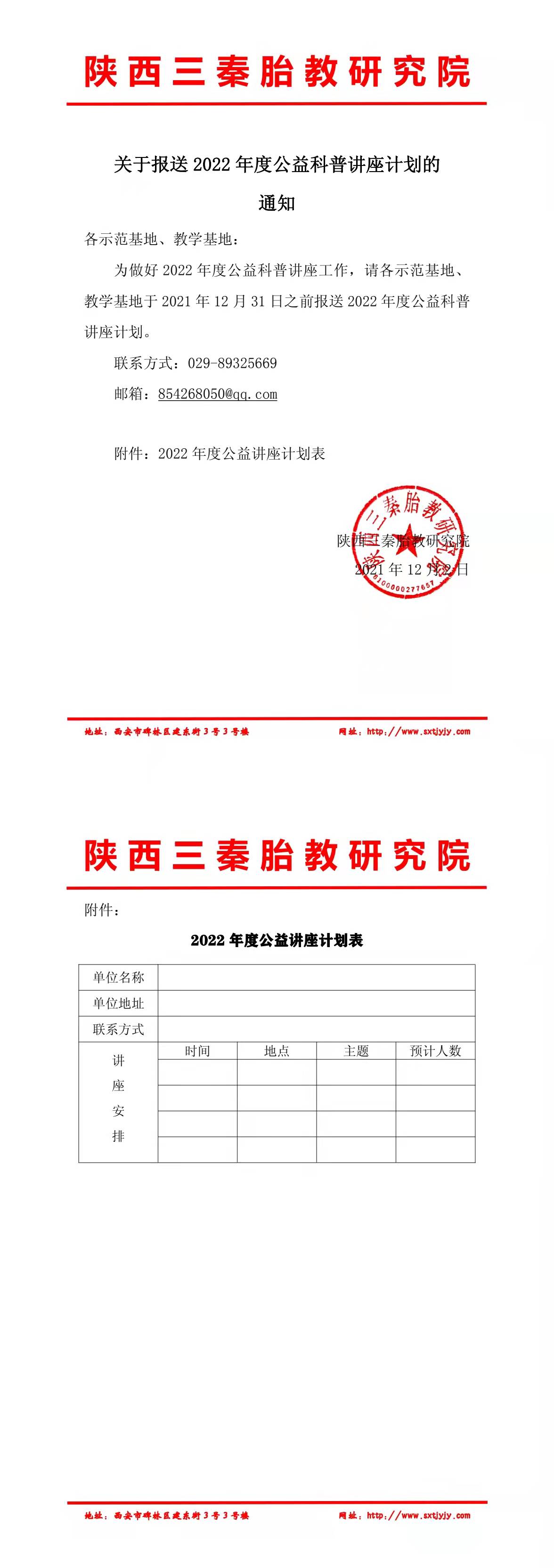 关于报送2022年度公益讲座的通知